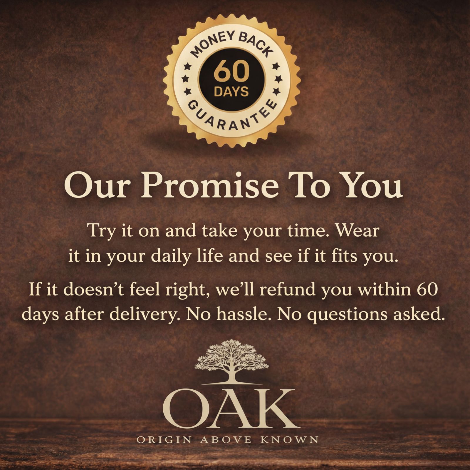 Try it on and take your time. Wear OAK in your daily life and see if it fits you. If it doesn’t feel right, we’ll refund you within 60 days after delivery.